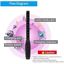 【Travel Size and Rechargeable】–Small and light for our UV lamp sterilizer, can be easily take out with you. This ultraviolet light wand comes with compact design and lightweight super convenient to store it in a backpack or suitcase for use while traveling and outings.Built-In 2200mah Li- battery,the UV lamp wand is charging via USB cable.