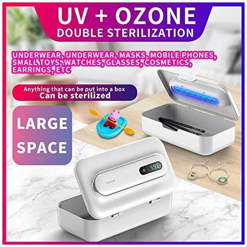 🚥 EFFCTIVE STERILIZATION: Multi-functional large disinfection box with digital display UV lamp to give more protection to health, killing 99% of bacteria and viruses using its 360 sterilization on phones/toys/mask/ jewellery etc or by using UV stick separately.