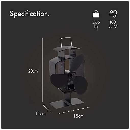 SELF REGULATING: This VonHaus stove fan operates accordingly to the temperature of the stove – Max airflow 180 CFM with self-regulating speed.