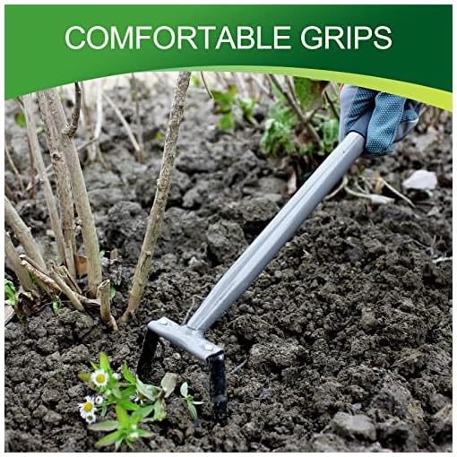 New Stylish Design: With a Triangular-shaped head, Walensee mini action hoe uses a special hollow design and is a very practical hand tool for gardeners. Ergonomic rubber handle which can ease the using stress of your hand, Comfortable and stability large grip allows you to weed for a long time without soreness.