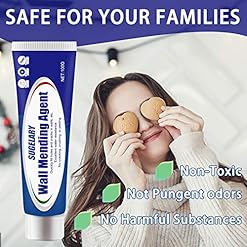 100% Safe Wall Repair Paste: Our wall repair cream is made of plant rubber powder, cellulose, synthetic resin and other environmentally friendly materials. It is 100% safe and non-toxic, and will not produce pungent odors and harmful substances. It is especially safe for children, adults, the elderly and pets.