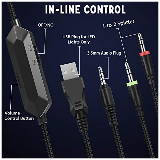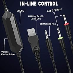 LED Lighting Effect: LED lighting effect of the gaming headset PC adds new ideas and colors to your tired life, allowing you to enter the world of games or music more relaxedly during leisure time. It is a good helper for family and friends to play together. USB is only suitable for LED lighting, you can also unplug the USB port to turn of it.