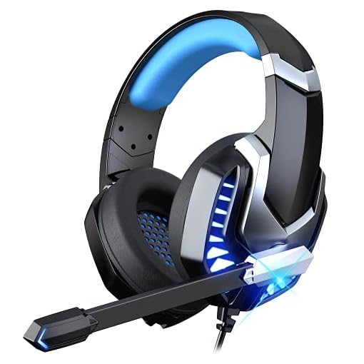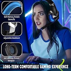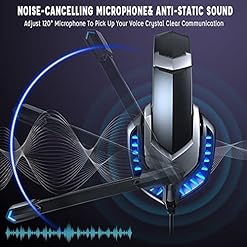 Wasart Gaming Headset, PS4 Headset with Adjustable Microphone and LED Light, Volume Control Gaming Headphones Wired with 50mm Driver, Over Ear Headphones for PC Xbox One PS4 PS5 NS Laptop