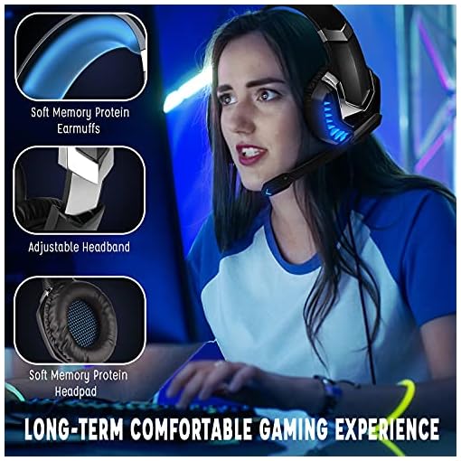 Ergonomic Fit: The trendy PC Gaming Headset has an ergonomically optimized fit. The padded headband, soft and durable earpads, and the individually adjustable microphone ensure maximum comfort. Even after intensive use for hours, the faux leather padding and headband sit comfortably firmly without disturbing.
