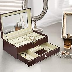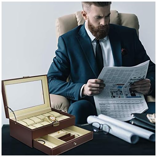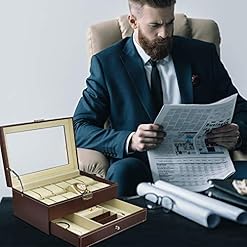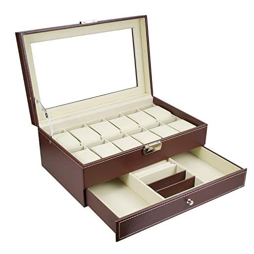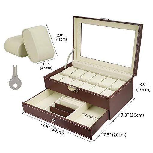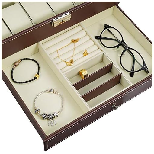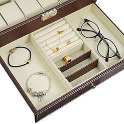 Watch Box 12 Grid Men’s Watch Organiser, Double Layer Design Jewellery Box, Lockable Watch Box with Glass Lid, PU Leather Jewellery Display Case for Storage and Display
