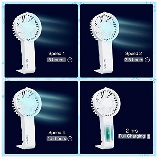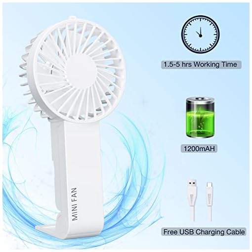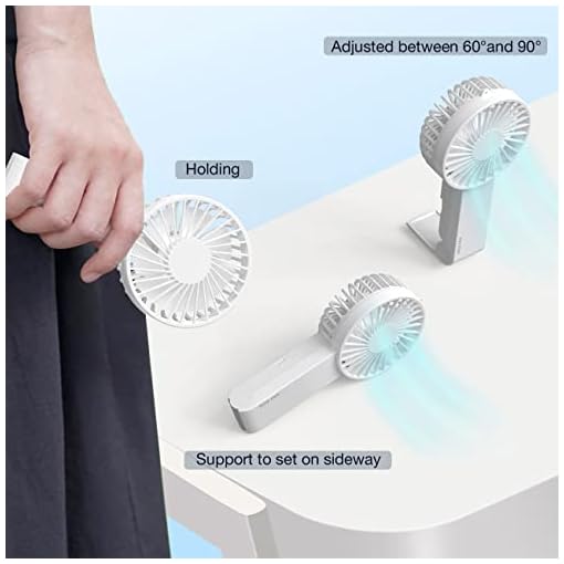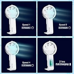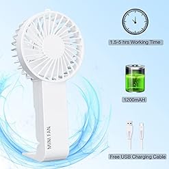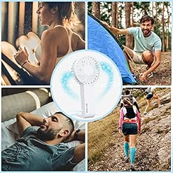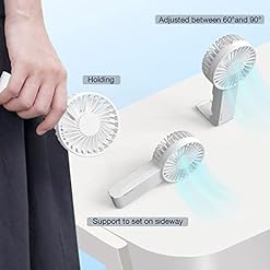 【Multipurpose Design】Our mini fan can not only be used by hand, but also be placed on the desktop. The small size of this fan is very convenient for you to carry, and the high-quality handle design makes you more comfortable to hold. The bottom of the fan has a folding design, which is convenient for you to place on the desktop and is very stable.