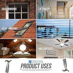Multifunctional – Made for reaching high surfaces, this skylight opening pole lets you comfortably open and close stiff sash or attic windows. The loft pole with hook is also handy to access your loft and retract your loft ladder.