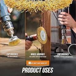 Multipurpose Wire Brush Set – This versatile wirebrush drill attachment is suitable for a wide range of applications, including rust removal, paint stripping, surface preparation, and general cleaning tasks. Whether you’re working on automotive repairs, home renovations, or DIY projects, these wire brushes for cleaning rust provides comprehensive cleaning solutions to meet your needs.