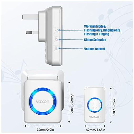 400M Wireless Range: VOXON’s plug in wireless doorbell is perfect for homes and office spaces of all sizes! It uses a powerful radio frequency chip with signal amplification that gives it a sensing distance of up to 400m/1300ft in obstacle-free environments. Now you can relax in confidence knowing that you will never miss a visitor!
