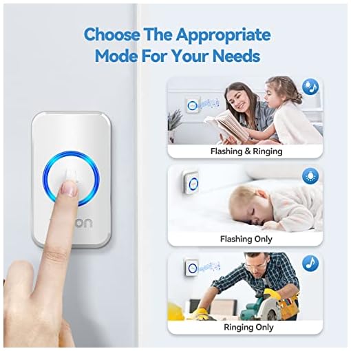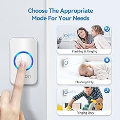 3 Working Modes: The wireless door bells has three modes – ring only, flash only, ring and flash. You choose the mode that best fits your needs. And because it’s so easy to switch between modes, you can always have your doorbell set to the best mode for the occasion. The flashing light with audio alert makes it easy to use, even for people who have difficulty hearing.