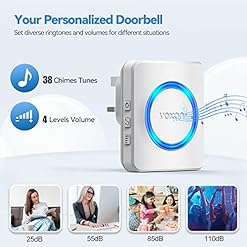Loud Wireless Doorbell: With 38 ringtones to choose from and 4 adjustable volume levels (ranging from 25db to 110db) you can find the perfect tone for your doorbell. The simplified system makes it easier than ever to set your doorbell ringtone just the way you want it.