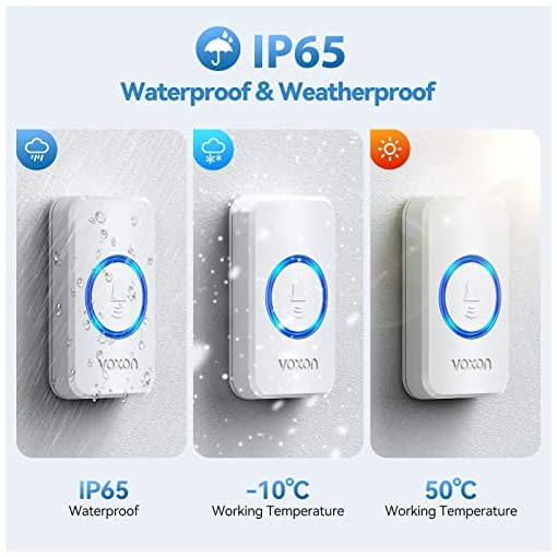 Extra-long Service Life: IP65 Waterproof – this cordless doorbell transmitter contains a waterproof built-in silicone ring to protect against rain or other unpredictable water sources. And because the outside of the doorbell is made up of high-quality ABS material, it is virtually fireproof. VOXON’s doorbells wireless are created to withstand a variety of harsh weather conditions outdoors with an extra-long lifespan that you can count on, rain or shine.