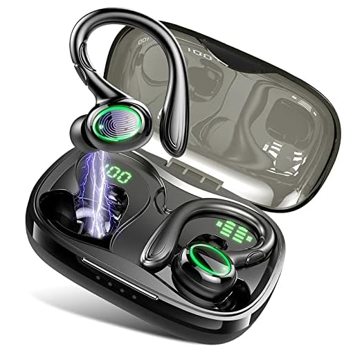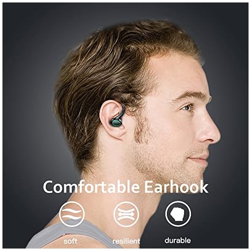 Rulefiss Wireless Earbud Bluetooth 5.2 Headphones HiFi Stereo Sound with Mic, Dual LED Display, IP7 Waterproof Wireless Sport Earphones Gray with EarHooks