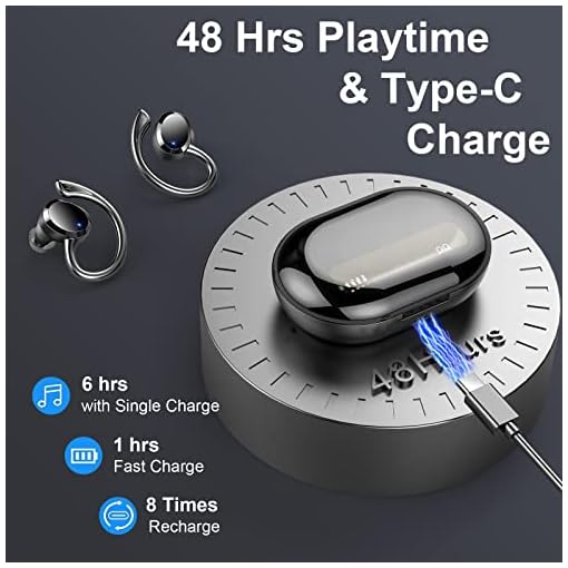 48 Hours Playtime and LED Power Display: The wireless earbud Bluetooth can last for 6 hours music time on a single 1 hour charge. The charging case can charge the sports earbud for 8 times, with the portable charging case you will get 48hrs playing music. Features with smart LED digital display, you can easily know the battery consumption on both ear buds wireless earbud and the charging case so you can master the time to charge it. Never worry about battery life even on long trips.
