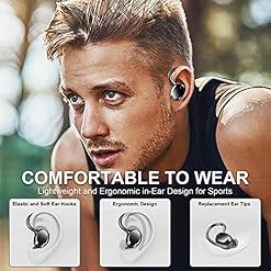 Ergonomic Comfort Sports Design: The running headphones included soft ears hooks are specially designed, which can fully fit your ears contours and maximally guarantee a comfortable wearing experience without falling out. Equipped with 3 pairs of different sizes of spare ear caps for options. Even do strenuous exercise, the earphones will not fall off. And this sport Bluetooth headset make an ideal companion while jogging, gym, yoga and more sports.