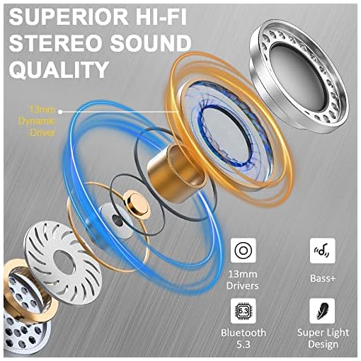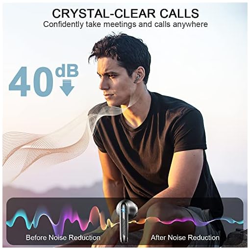 High-fidelity Audio and Crystal Clear Call: Wireless earphones with 13mm vibrating diaphragm and AAC/SBC audio coding technology, resulting in sufficiently strong bass and naturally connects to the mid and high frequencies. Noise cancelling earbuds built-in quality MIC Clear and (CVC) 8.0 noise cancelling tech that effectively separates your voice from the ambient sound, makes the communication clear, perfect for video calls or online meetings work.