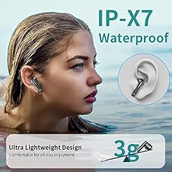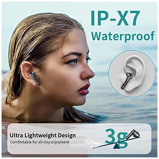 Ultra-light and Comfortable Fit: Mini charging case does not take up space to carry, and ear buds wireless earbuds are ergonomically designed, each earphone weighs only 3g, allows you to wear them for a long time without feeling uncomfortable. Ergonomic design provides a comfortable and secure fit that doesn’t protrude from your ears especially for Sports. IP-X7 waterproof can effectively prevent the earphones wireless bluetooth from the damage of sweat and raindrops, made for Gym/travel etc.