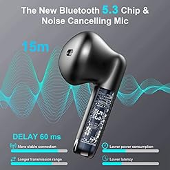 Bluetooth 5.3: Earphones wireless bluetooth adopts the advanced Bluetooth 5.3 technology and support HSP, HFP, A2DP, AVRCP, which ensure more stable connection, lower latency and lower power consumption during data transmission. Bluetooth transmission range can reach 15 meters away. Whether you are at home, in the office or on the go, don’t worry about a disconnected connection.