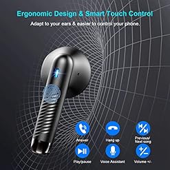 Touch Control and One-Step Pairing: Simply take the wireless earbuds out of the charging case and they will automatically connect to your phone in 1 seconds. The headphones wireless come with touch control technology which you can easily access different functions such as media control and calls, switch to next or previous track, play or pause. Earphones wireless bluetooth truly realizes a wireless experience, get rid of the unhappiness caused by physical buttons.