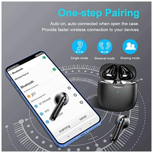 Lightweight and Portable: Only 3.0g for each earbud, which is 20% lighter than standard earbuds. Use the ergonomically designed to ensure your In-Ear Headphones fit comfortably to the ears. J51 Upgraded mini charging case has been designed to easily fit into virtually any pocket or bag. You can carry this Pocket-Size earbuds everywhere.