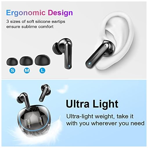 Ergonomic Design and Easy To Carry: H68 earbuds are ergonomic and equipped with 3 size ear caps, designed for different ear shapes to ensure a comfortable fit.