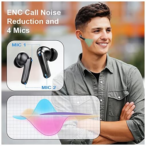 Smoonigh Wireless Earbuds, Bluetoth 5.3 Headphones with 4 Microphone