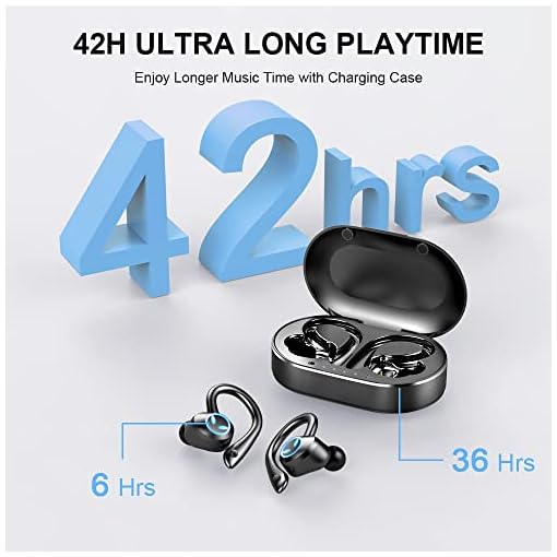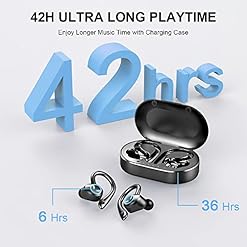 42 Hours of Playtime and USB-C Quick Charge: Wireless headphones can provide up to 6 hours of playtime, and the charging case can provide additional 6 charges, so that the total playtime reaches 42 hours. The upgraded Type-C charging port can provide faster and safer charging. LED battery indicator on the case can help check the charging status of bluetooth headphones and charging case. Running headphones in ear are very suitable for outdoor sports,workouts whole day.