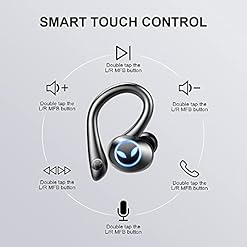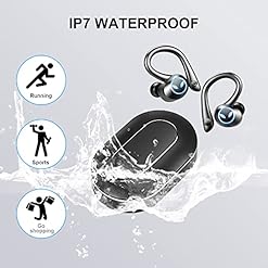 Fit for Sport and Mono Mode: Lightweight, soft ear hook design and 3 different sizes of silicone eartips provide individualized fit and secure stay in ear when you are working out or running. Each earbud can work independently, no master mode limited. You can hear your music and also hear what’s going on around you for better awareness,you can use one earbud and charge the other one at the same time.(Tips: IP7 level waterproof and sweatproof)