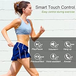 Sensitive Touch Control: In ear headphones adopt touch control technology, and it can help you easy to achieve multiple functions, include play/pause, answer/reject phone, volume adjustment, switch music, activate voice assisatant etc. So you can use this bluetooth headphones in ear to free your hands completely when you are doing exercise, bicycling, driving or running.