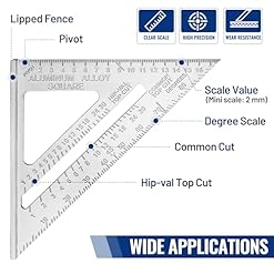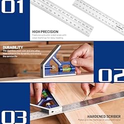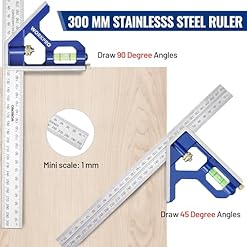 PRACTICAL AND DURABLE: 300mm combination square is comes with a level. The scales are laser engraved for maximum accuracy. The Rafter Square Layout Tool has high quality bevelled corners and is 180mm in length. The angle can be measured using the pivot point, protractor and straightedge, then the stop and scale help you to tear off the straightedge. The Rafter Square Layout Tool has a high quality bevelled corners and is 180mm in length.