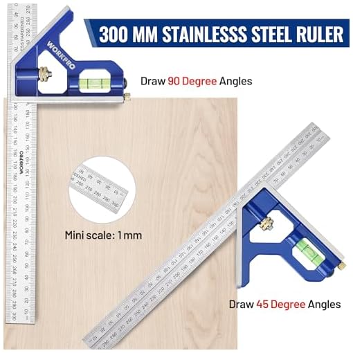 WORKPRO 180mm Speed Square and 300mm Combination Square Set, Aluminum Speed Square and Stainless Steel Combination Square, Adjustable Carpentry Square, Measuring Tool for Engineer Carpenter