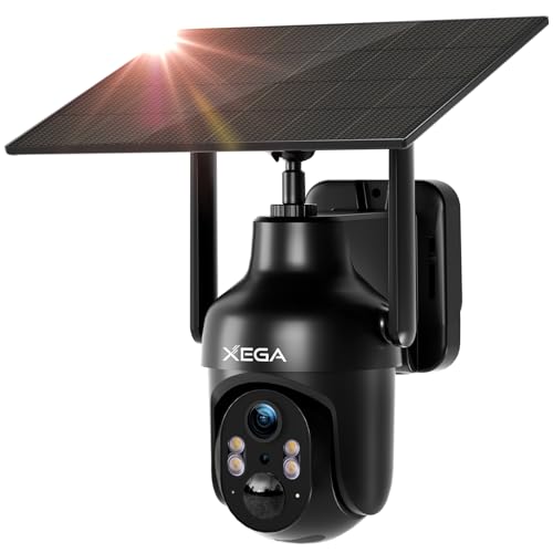 Xega WiFi Security Camera, Wireless Solar Camera for Home, 3MP Color Night Vision, Full 360° Surveillance, Motion Detection for Property Security, Pet, Baby, Cloud & SD Card Storage