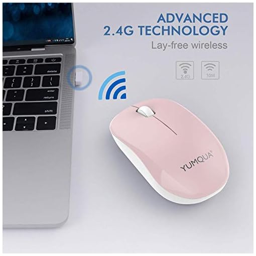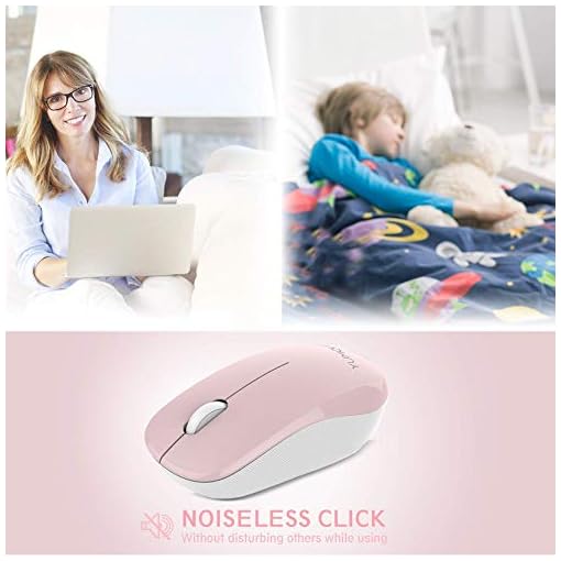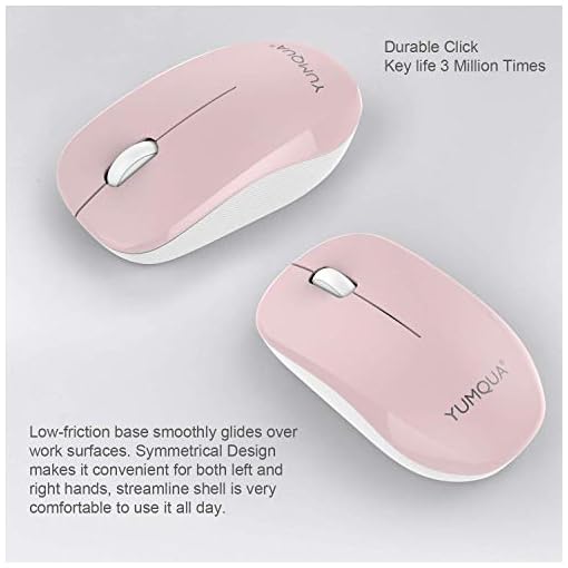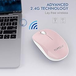 【Noiseless Click】YUMQUA wireless computer mouse features 90% noise reduction, which makes it an ideal silent wireless mouse for office, conference room, cafe, library, bedroom, help you concentrate on your work, study without disturbing others besides you. Note: scroll wheel is non-silent.